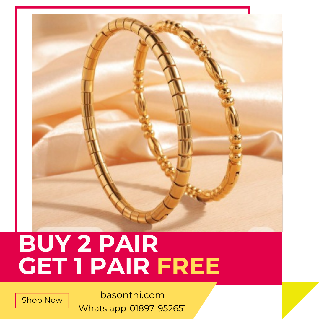 Non Tarnish Waterproof 18k Gold Plated Stainless Steel Bangle Bracelet for Women(২ পিস )